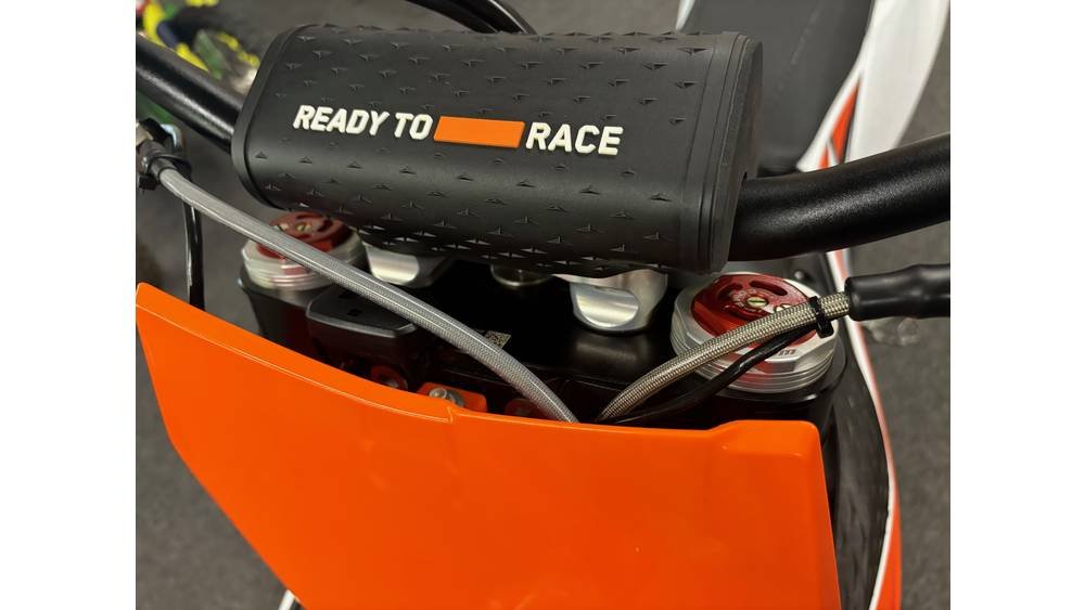 - Easy Suspension Adjustment: Get dialed in! The 2023 KTM SX range boasts totally tool-free suspension setup at both ends. Thanks to an all-new shock absorber design featuring hand-adjustable dual compression control, it allows riders to adjust high- and low-speed settings in a matter of seconds. On the front end, the forks are also easily adjusted thanks to a single air pressure preload valve, as well as through easy access click adjusters for compression and rebound. We’ll even throw the air pump in as standard.